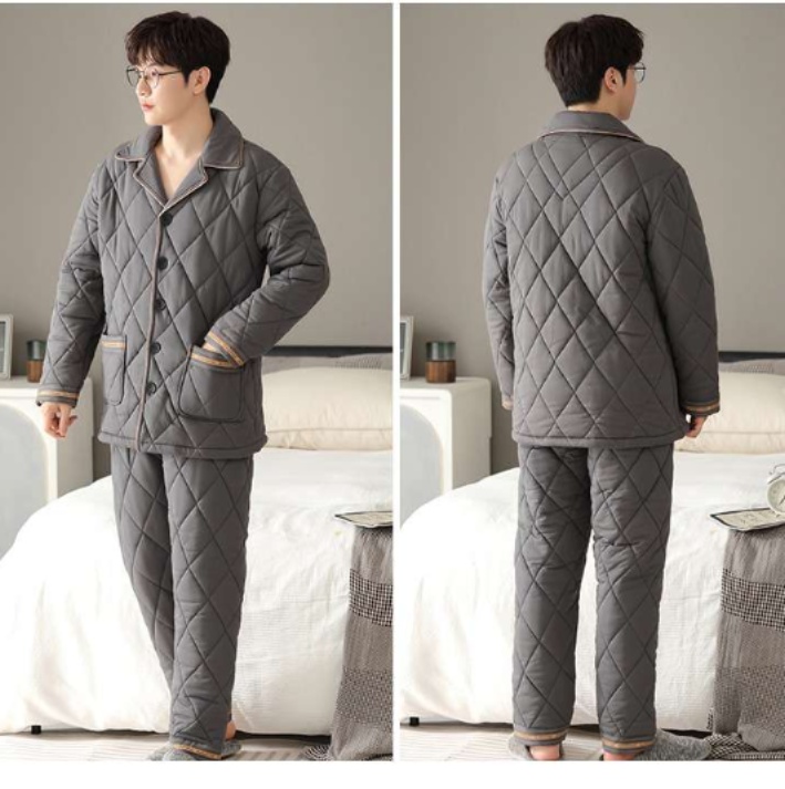 メンズパジャマの決定版。ふっくら中綿入りキルト生地の綿素材で保温性抜群。