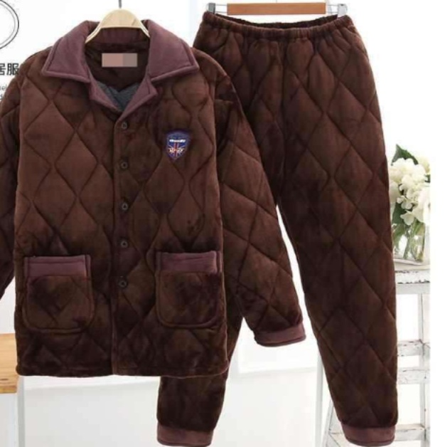 ふわふわで暖かい綿100%のキルティングパジャマセット。メンズパジャマとして上質な着心地を提供します。