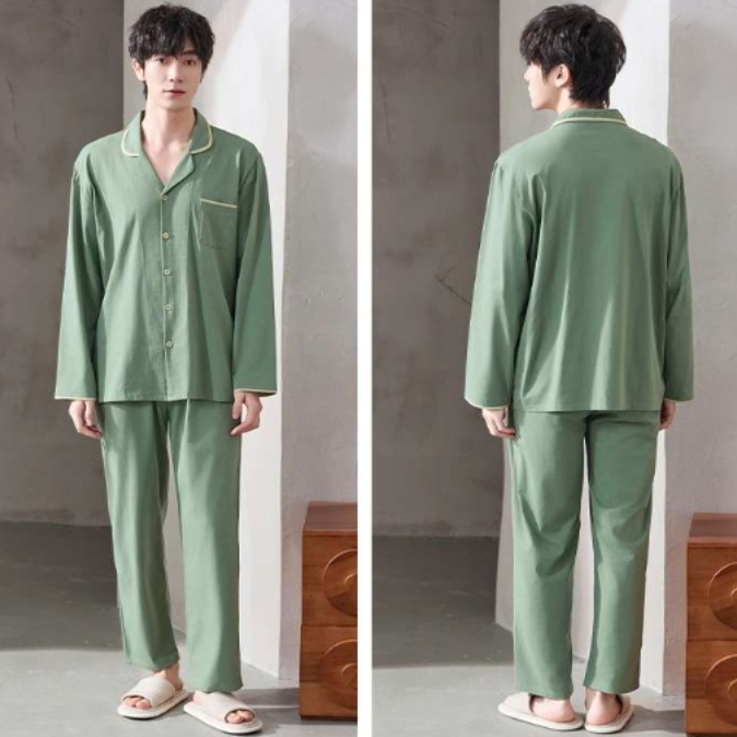 胸ポケット付きのゆったりシルエットで、室内でのくつろぎタイムにも最適な上下セット。